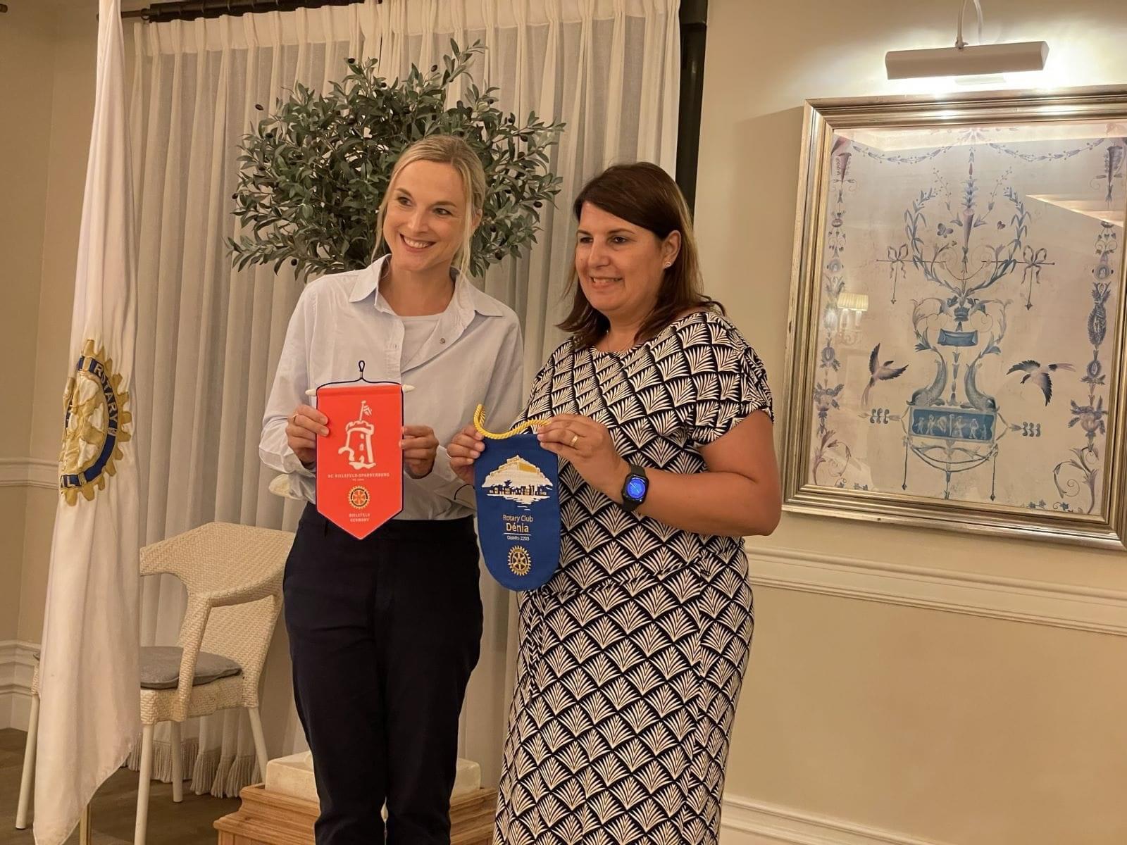 Rotary Club Dénia ha celebrado su primera reunión ordinaria. La alemana Natalie Bartholomeu intercambió el banderín de su club con la presidenta del Rotary Club Dénia, Mª Clara Femenía. Además, el club tuvo la visita de tres «outbounds», Sara, David y Alina, quienes contaron sus experiencias con el programa de intercambios del pasado curso.